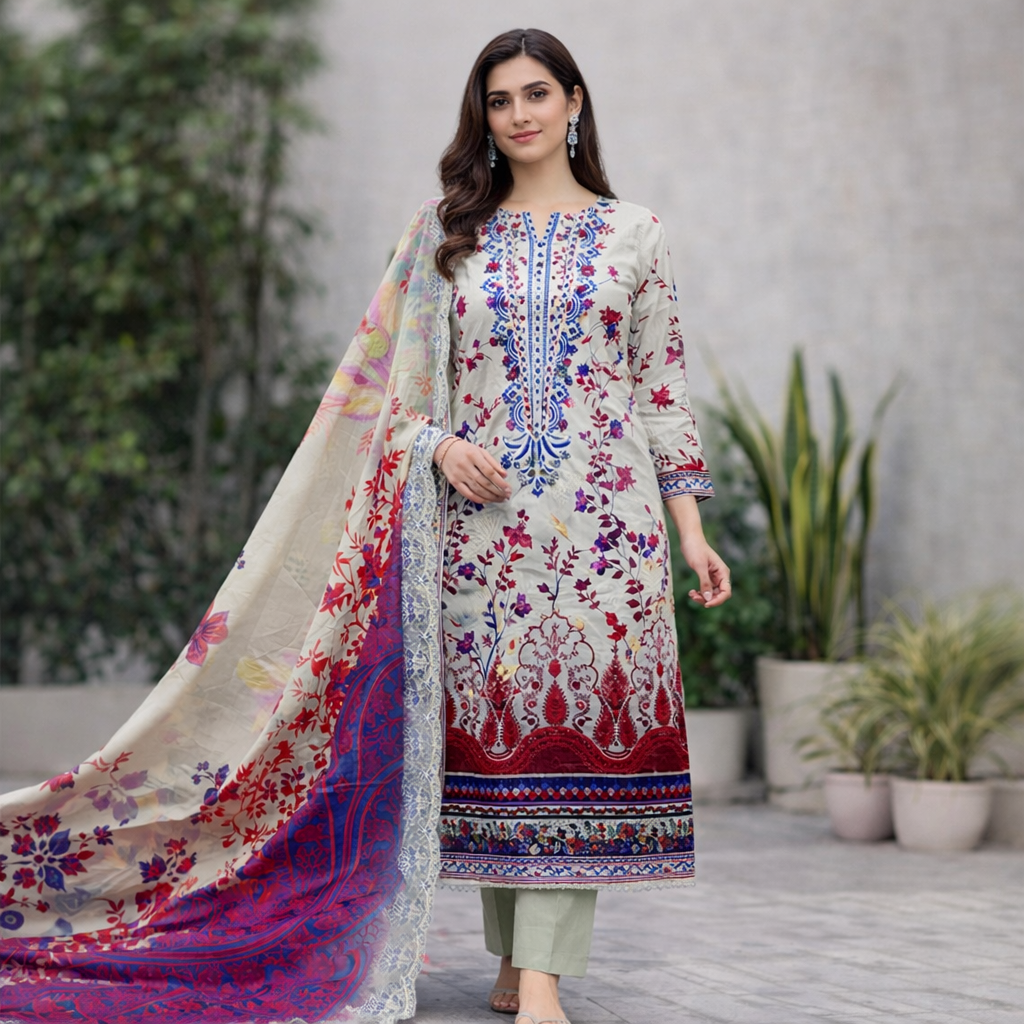 ✔ Printed Lawn Front, Back & Sleeves — 3 Meter